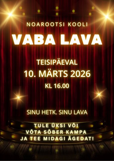 Lavale sobib kõik, mis sind kõnetab – olgu selleks laul, playback, näidend, võimlemiskava, pillimäng, kunstiteoste tutvustamine või midagi täiesti omanäolist. Lava ootab sind!