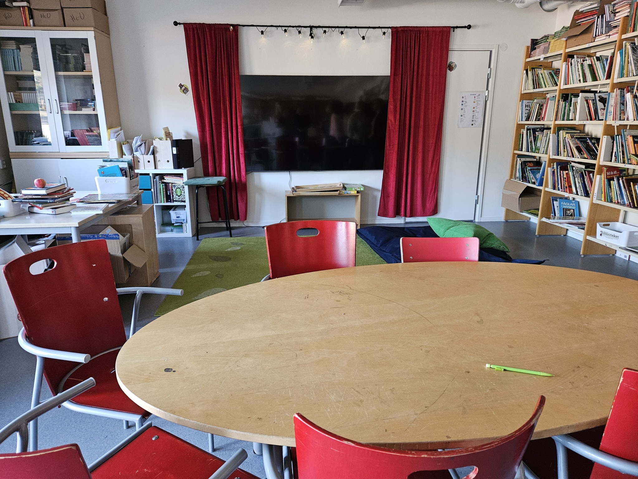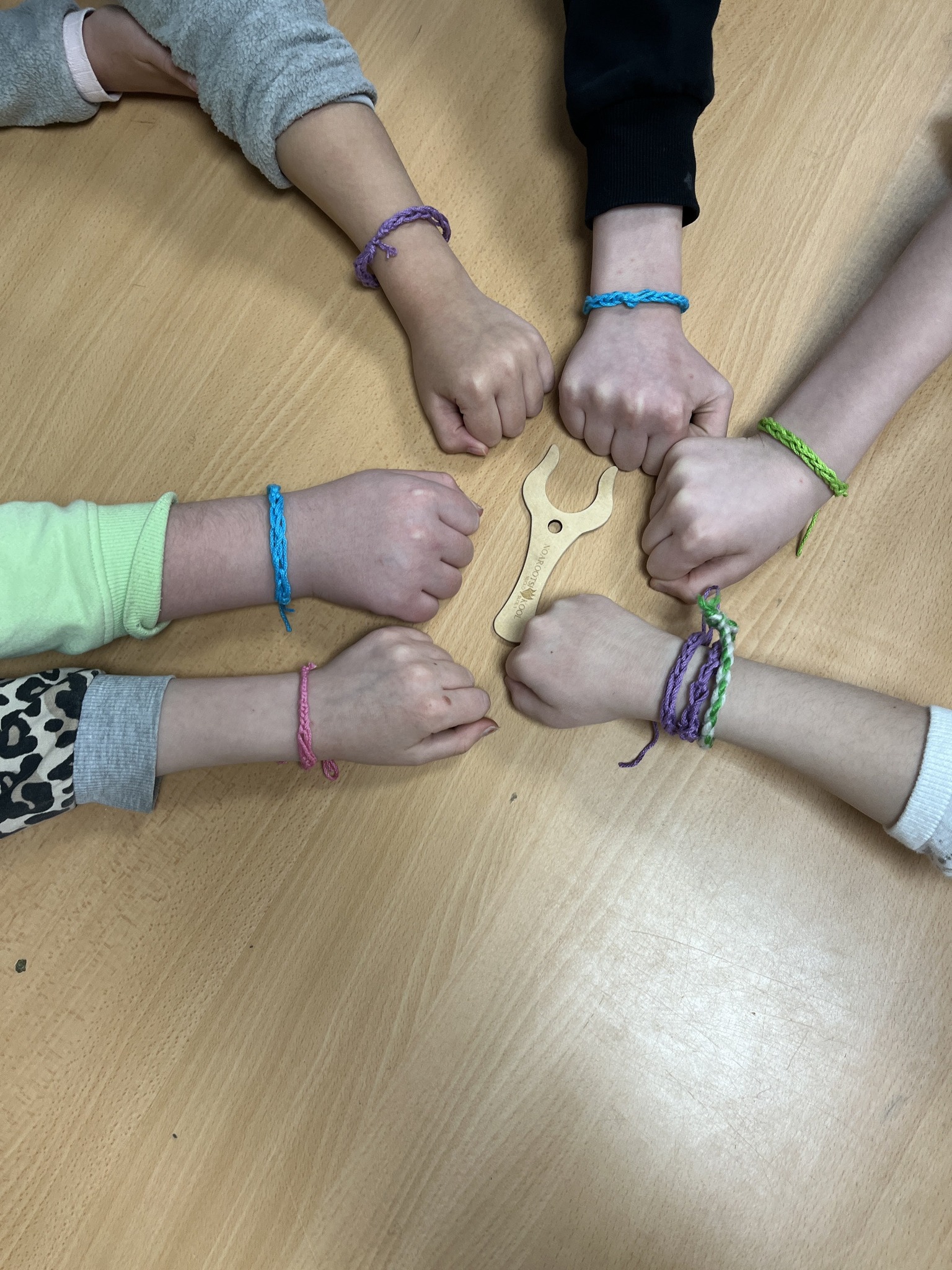 Õpetaja Kristiina oli meie koolis laserpingis valmistanud Rootsi koolile kingituseks kaaruspulgad. Nii tehtigi meie sõpruskooli 3. klassiga väike töötuba, kus Kristiina õpetas lastele kaaruspaelu punuma. Rootsi kooli tekstiiliõpetaja Wence sai omakorda suurt indu töötoast ning lubas, et korraldab kaaruspaela valmistamise töötoad ka teistele klassidele.
