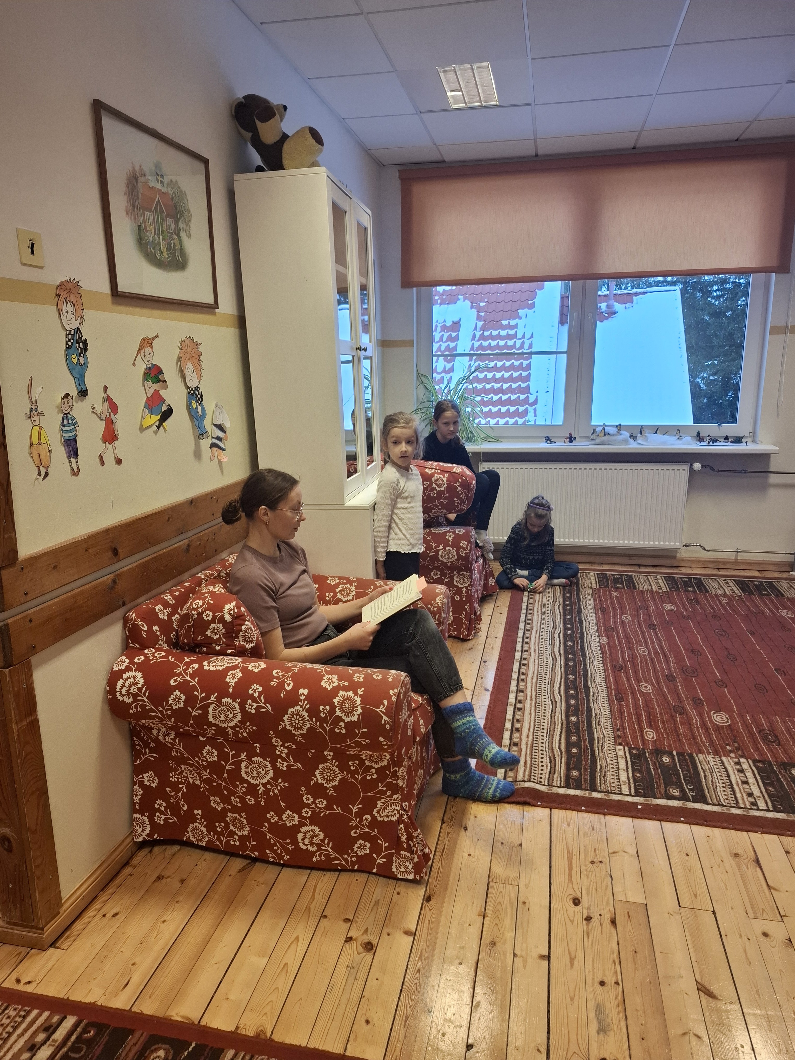 📖 Kristiina luges lastele ette raamatust “Oskar ja asjad”, mille on kirjutanud Andrus Kivirähk. Raamatu peategelane on Oskar, kes lõpetas äsja lasteaia ja valmistub kooli minekuks.
