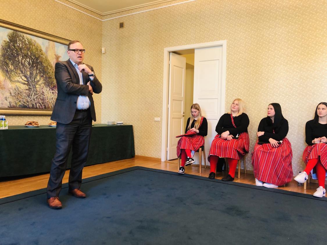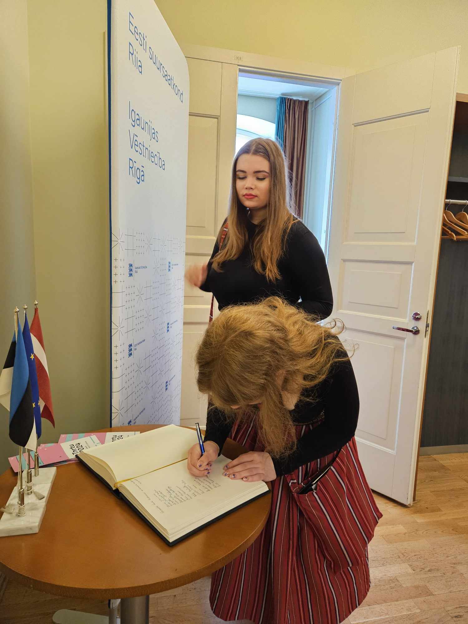 Ka Eesti saatkonnas sai meie tütarlastekoor väga sooja ja armsa vastuvõtu osaliseks. Suursaadik Eerik Marmei rääkis lastele Eesti saatkonna sünnist Lätis ning andis lühikese ülevaate Eesti diplomaatia ajaloost. Lapsed said teada, millega Eesti diplomaadid igapäevaselt tegelevad ning millistes riikides on Eesti esindatud. Konsul Marika Kõiv rääkis aga sellest, kuidas saatkond saab aidata võõrsil hätta sattunud Eesti kodanikke.
