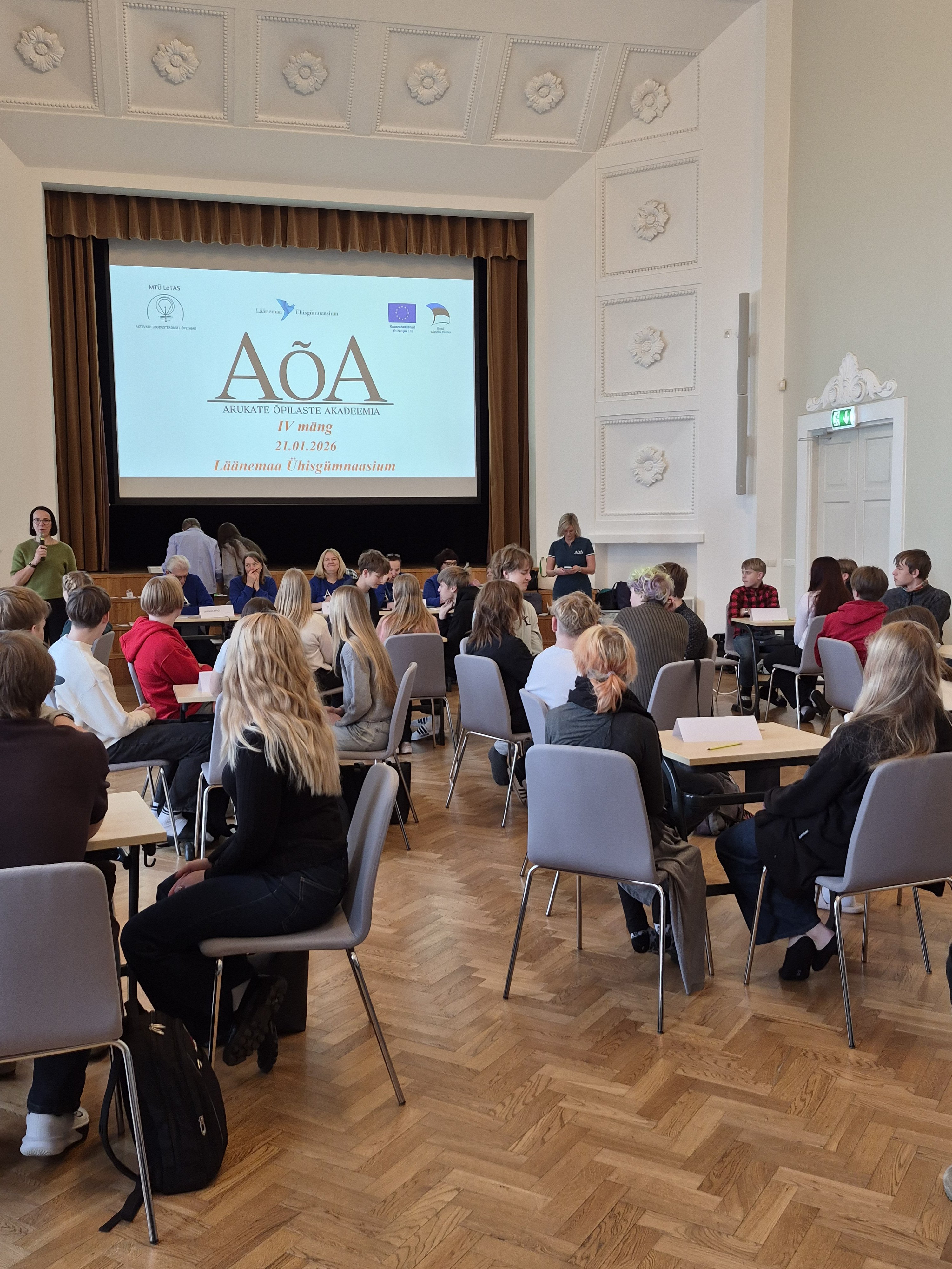 Sel kolmapäeval, 22.jaanuaril, toimus Arukate Õpilaste Akadeemia Lääne regiooni 4.mäng Läänemaa Ühisgümnaasiumis. Meie kooli esindasid: Randar (9.kl), Linda Maria (7.kl), Kärt (7.kl) ja Mirtel (7.kl) ja saavutasid põhikoolide arvestuses III koha, jagades seda Ridala Põhikooliga. Palju õnne!